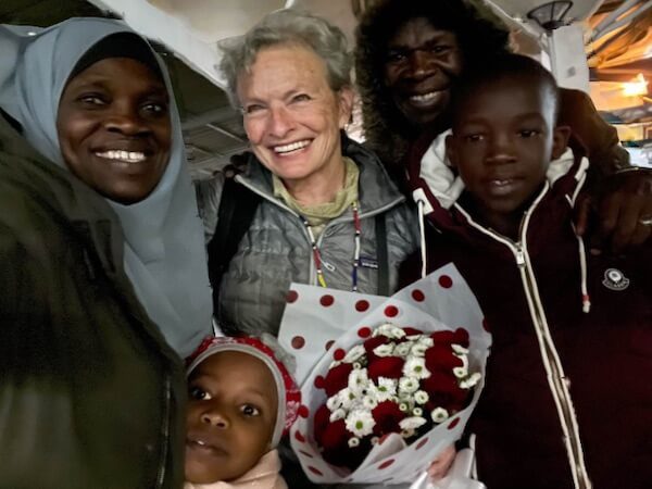 Kim arriving in Nairobi last month being greeted by friends and students from The S.H.E. Fund, a non-profit she helped to found that supports education for Maasai girls in Kenya.