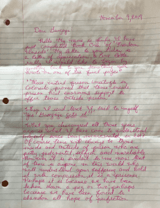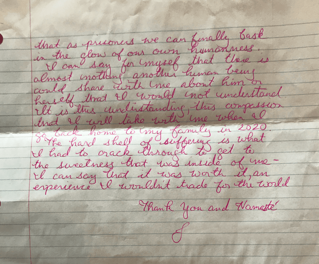 "I have found writing these letters to a prisoner to be a most intimate and deepening act of love towards myself, as well as a way of appreciating and acknowledging our shared human beingness."